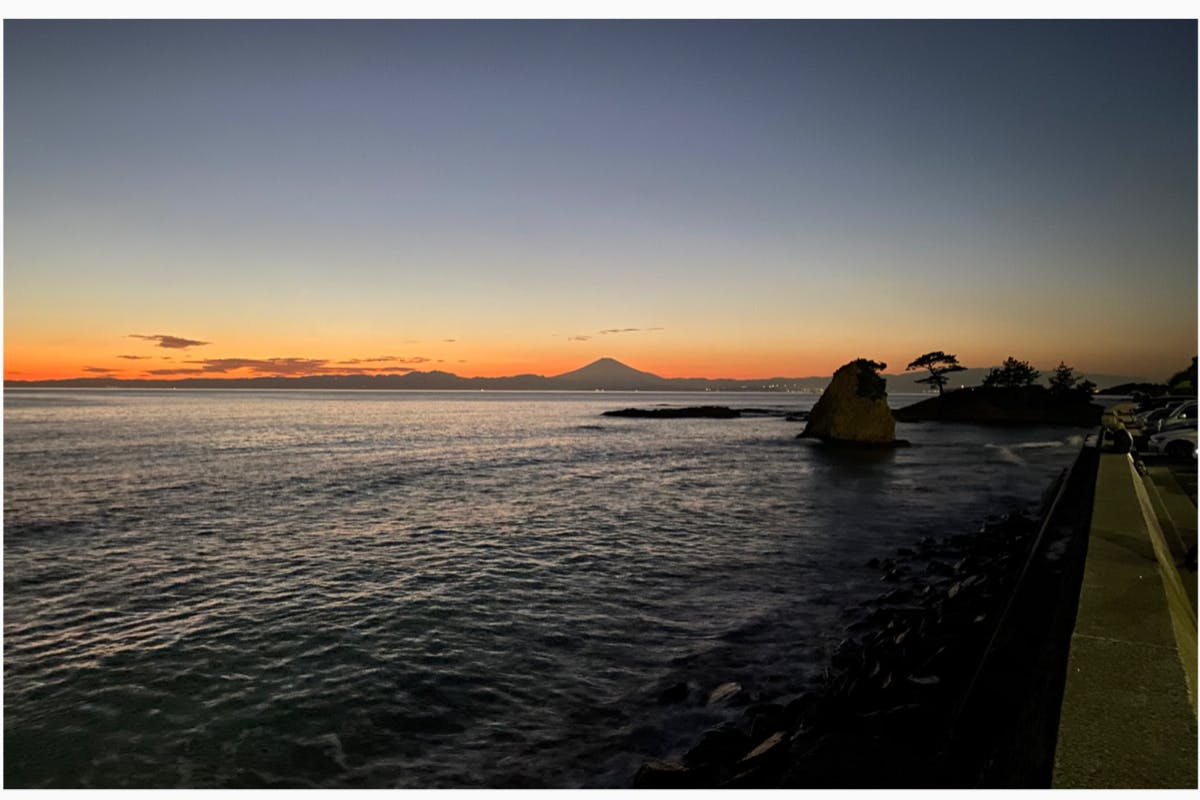 ・富士山眺望スポット…晴れた日に見える富士山がすごい!今回は雲がすごくて見えないですが、夕日がチラリと。穴場スポット。