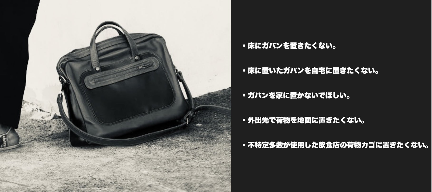 床にカバンを置かないことが清潔に保つことができるといえます。