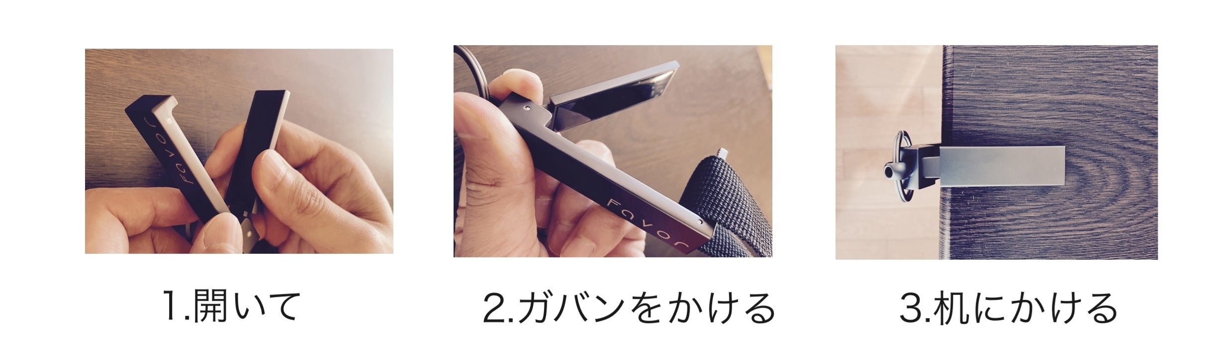 それを解決するのが、Favorバッグハンガーです。