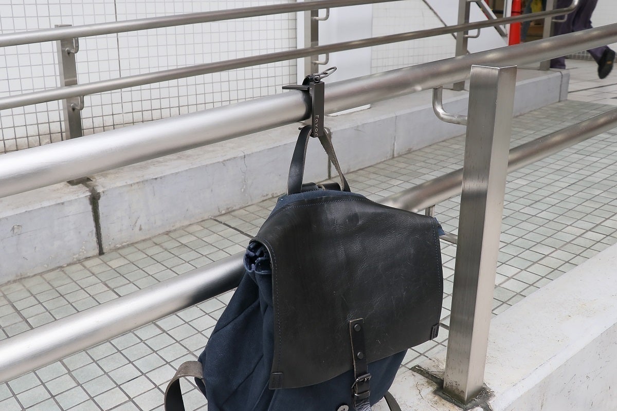カバンだけでなく、公園などに持ち歩く水筒や買い物袋、服なども地面に置かずに、清潔に保つことができます。