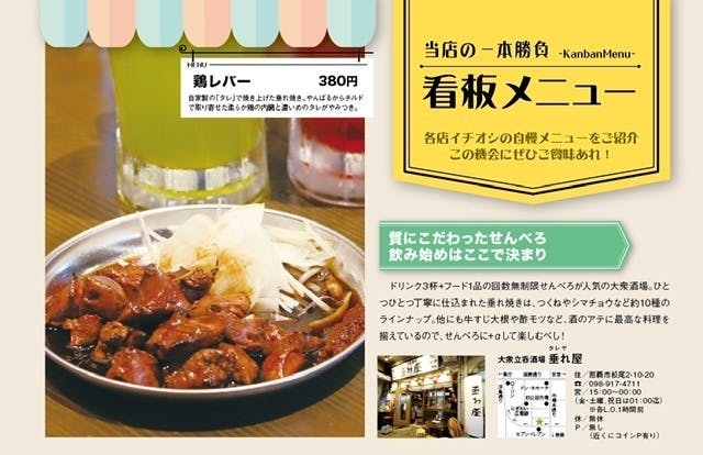 はじめまして、那覇市国際通り近辺で居酒屋垂れ屋、米仙の2店舗。
