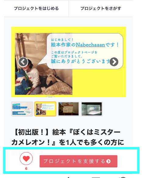 ③【プロジェクトを探す】から再度このプロジェクトページを検索いただき、①同様、「プロジェクトを支援する」というボタンをクリック