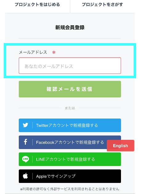 ②CAMPFIREへの新規会員登録をする(登録無料です!)