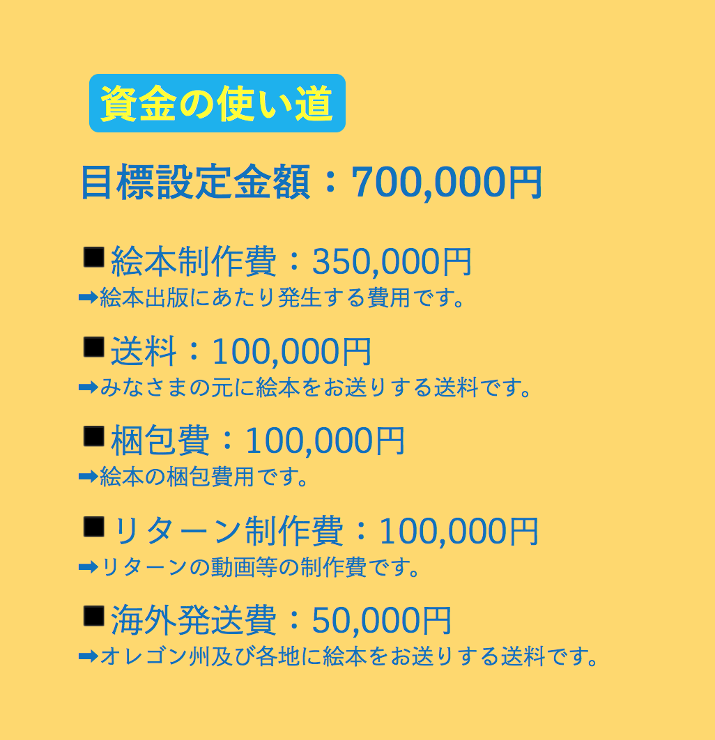今回出版する絵本は、書店にも並ぶため今まで以上に多くの方の手に取っていただければと思っております。しかし国内だけでなく、海外の日本語学校や図書館に送り届けたい!と思い、このプロジェクトを立ち上げるに至りました。
