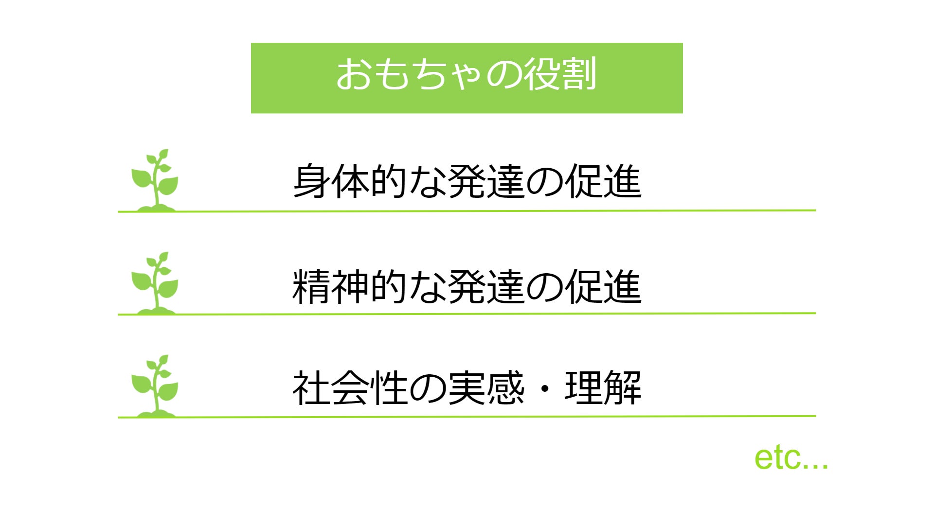 そんな中で改めてではありますが、おもちゃが果たす役割を見てみましょう。
