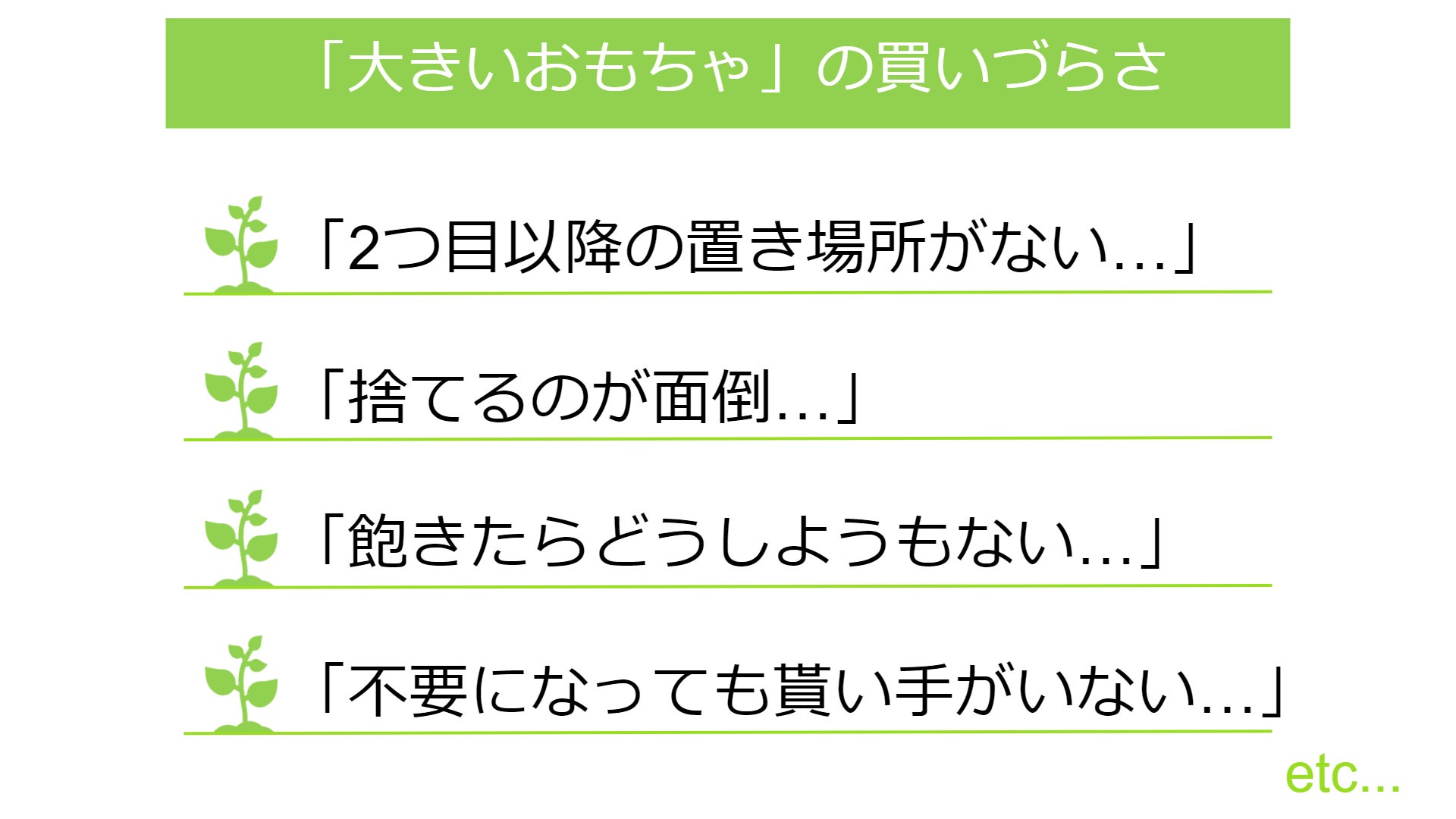 大きなおもちゃは、買い替えや複数所有が難しいですが、定額レンタルサービスであれば、