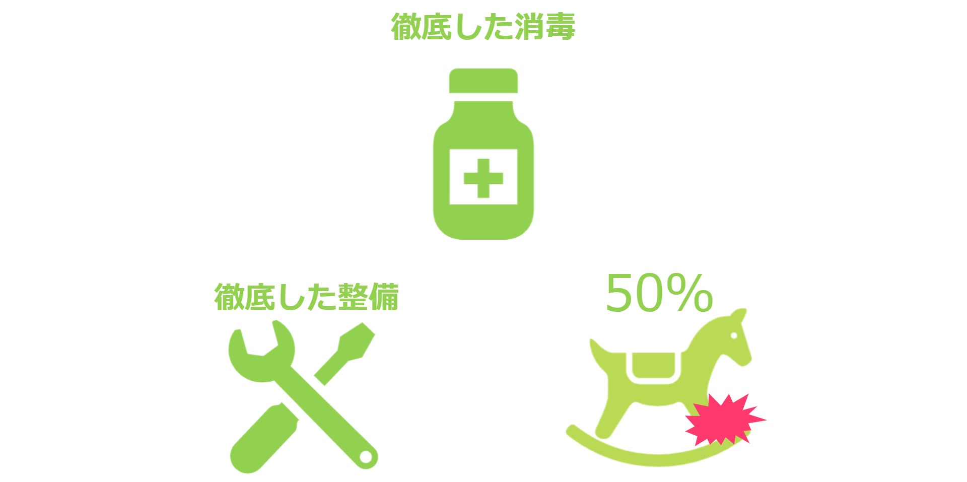 整備・消毒についても、お使いいただく前に徹底して実施いたします。