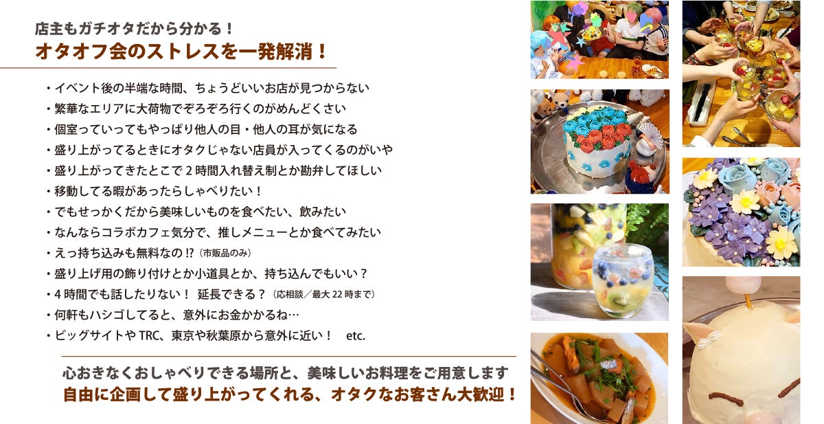 いわばオタクのオタクによるオタクのための「完全貸切オフ会プラン」として、オフ会の幹事さんを悩ませる数多のストレスをとことん解消しようと、オタク心全開で考えました。