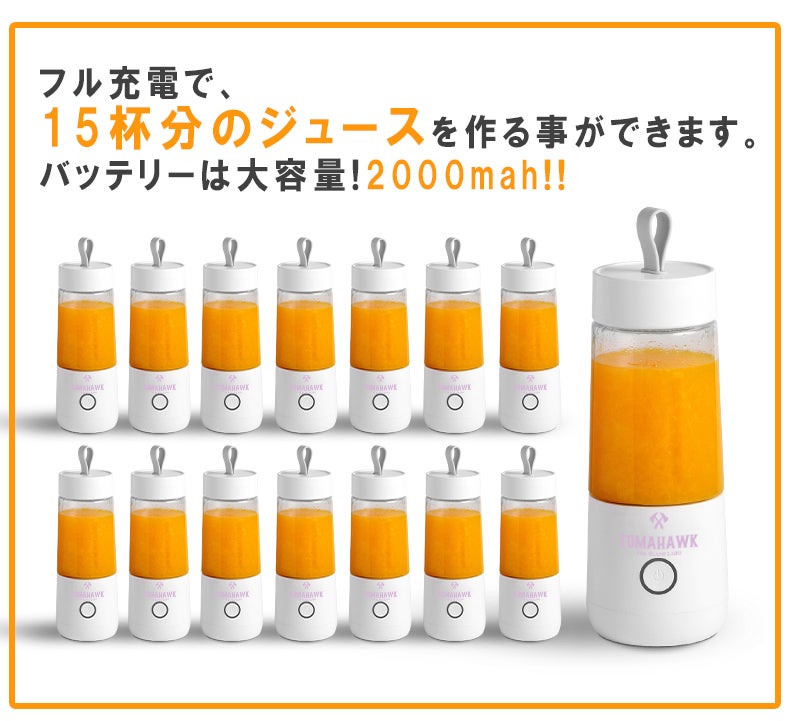 1度の充電でなんと15杯分ものジュースができます!