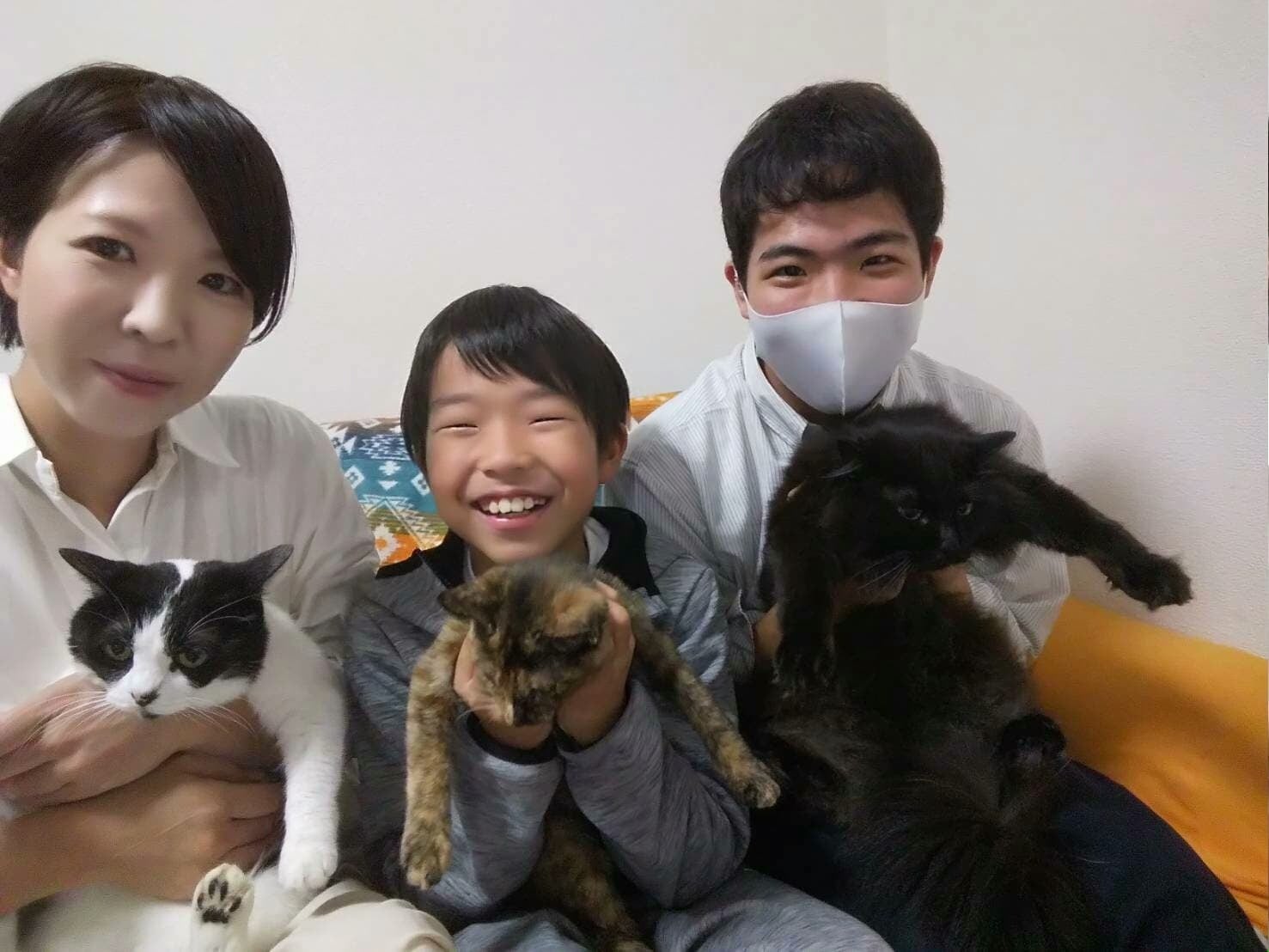 元保護猫2匹と東日本大震災で飼えなくなったという理由で、里親に出されていた現在寝たきりの犬、主人、高校2年生と小学4年生の息子2人と暮らしています。