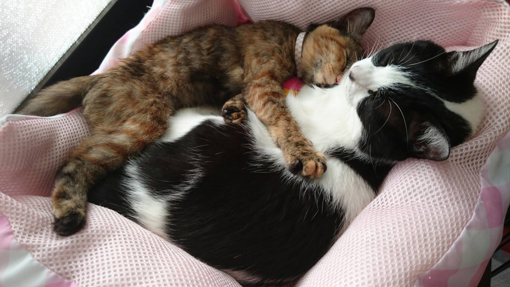 2021/03/03 15:02一ヶ月ぶりの活動報告となり申し訳ありません。https://t.co/bVyoeLJAzD?amp=1⇧⇧こちらは前回の活動報告となります。我が家の正式な家族となってからのナッツの様子をご報告させて頂きます。左から白猫マック(♀)・黒猫チップ(♂)・サビ猫ナッツ(♀)夜はまだまだ寒く、三匹で一緒に寝ている時もあります。ストーブの前で三匹は春が来るのを待っていますツチノコのようにぺたんとなって寝るナッツが好きです。▼次男とナッツ次男が勉強中もいつも一緒のナッツです。これは勉強用のパーテーションです。リビングで勉強する次男が集中出来るよう100均で購入しました。でも結局パーテーションなどお構いなしのサビ猫ナッツです。しばらくすると今度は次男が勉強中だというのにパーテーションの裏で喧嘩が始まりました。次男はパーテーションのおかげで全く気付いていません。今日は白猫マックが優勢のようです。▼朝の幸せな時間朝は比較的私にも甘えてくれるサビ猫ナッツです。▼別の日の朝朝は空気の入れ替えに窓を開けます。ナッツはこの場所がお気に入りです。▼1匹でも楽しめるサビ猫ナッツ夜行性の猫は昼間寝ているのですがこの日はまだまだ遊び足りないようです。先住猫2匹がいなくとも楽しい遊びを見つけるのが得意のナッツです。▼家猫にとっては未知の生物カエルついつい駄菓子屋さんで購入してしまったカエルのおもちゃ。白猫マックとサビ猫ナッツは興味津々ですが黒猫チップは案外怖がりなんです。■最後に我が家には昨年10月に亡くなった愛犬クルーがいました。元気な頃のクルーです⇧⇧亡くなる3年程前から後ろ足が動かなくなり、寝たきりになりました。そこでもう一度立たせてあげたいとYouTube動画を参考に歩行器を作りました。クルーのサイズに合わせた歩行器です。塩ビ管で作るのでコストがかなり安く済みます。材料費3000円~4000円ほどで作成出来ました。残念ながら歩行器を作って半年ほどでクルーは亡くなりました。そこでナッツの里親募集が終了した後、SNSで歩行器が必要な方に譲渡の呼びかけをさせて頂きました。沢山の方にシェアして頂き、何名かの方からメッセージを頂きました。ありがとうございました。県内の方からのご連絡はありませんでしたので一番近い県の方にお譲りさせて頂きました。クルーへの愛情がこんな形でお役に立ててもらうことが出来、とてもありがたいです。ナッツとクルーが過ごした時間は1か月ほどでしたが私はこの写真が大好きです。今日も活動報告読んで下さりありがとうございました。★おまけ 黒猫チップ高校二年生の長男へコロコロを使い終わったら剥がした粘着シートはゴミ箱に捨ててほしい もっと見る