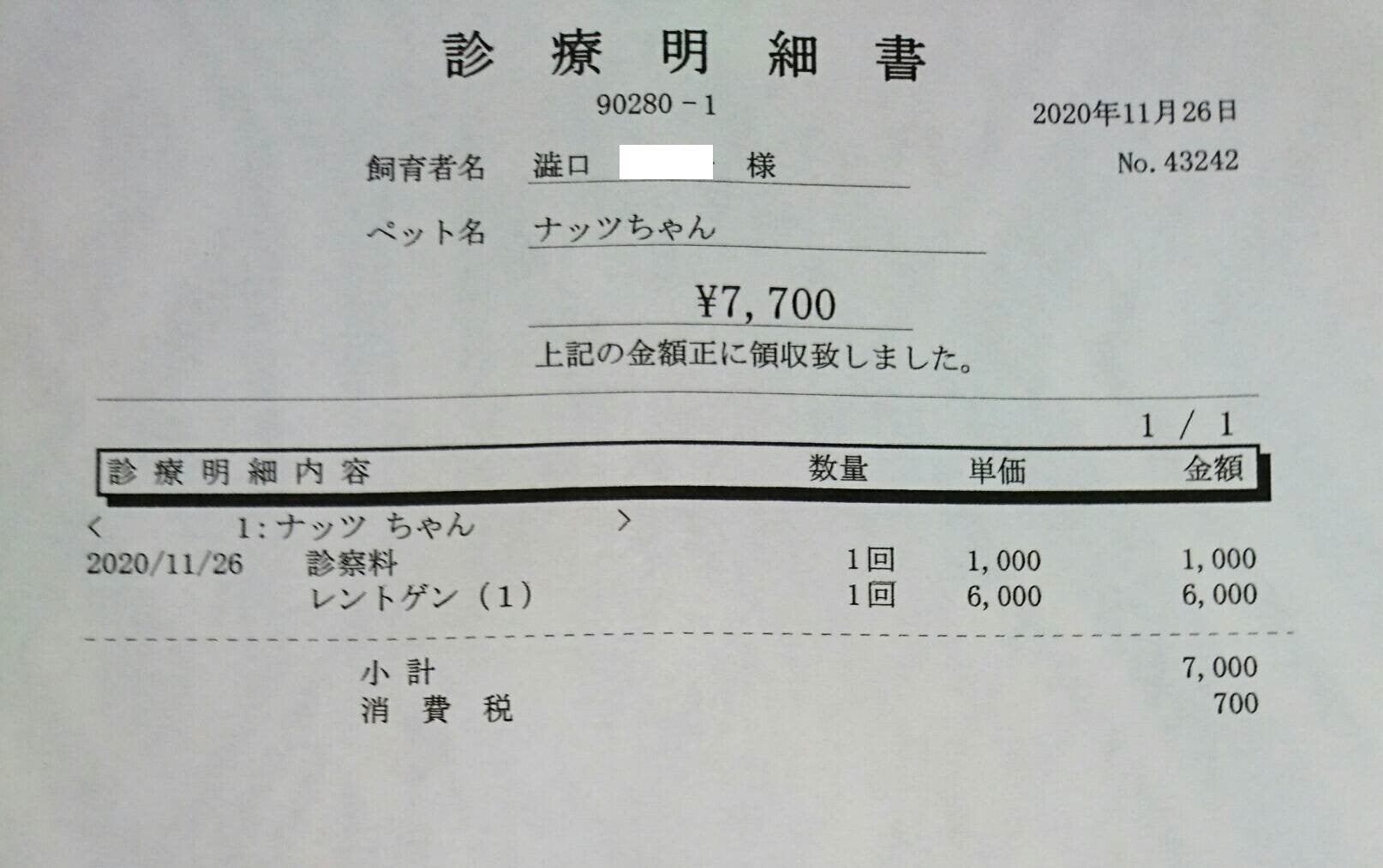 診察料7,700円