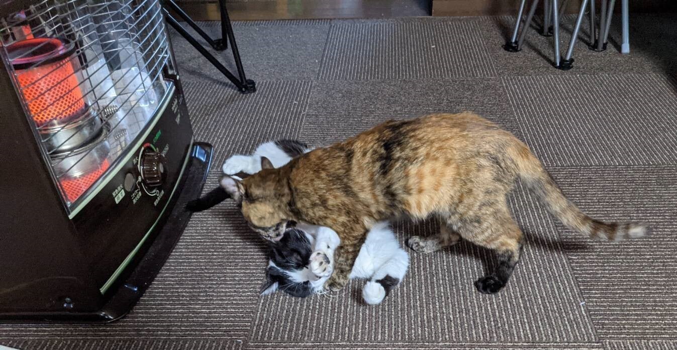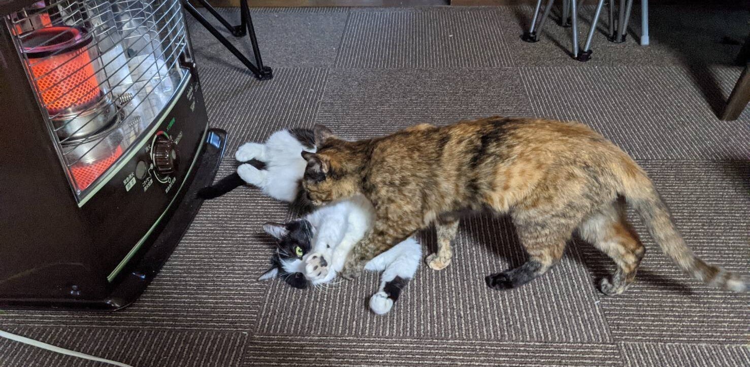 今日もサビ猫ナッツは元気に過ごしております。ナッツにとっては初めての冬、以前は長男の部屋でお昼寝をしたりしていたのですが、リビングの暖から離れられないようです。