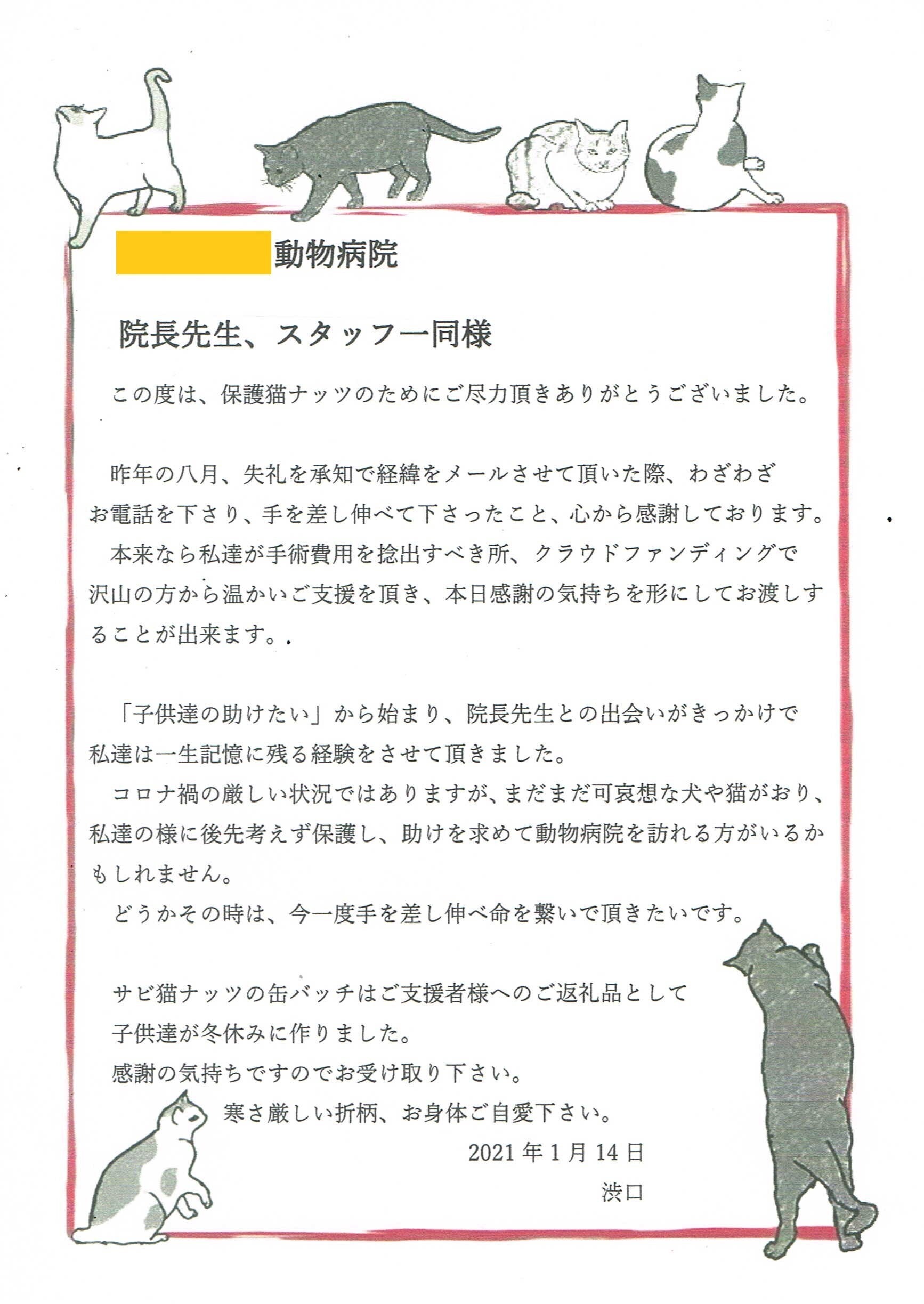 この度は、保護猫ナッツの為にご尽力頂きありがとうございました。