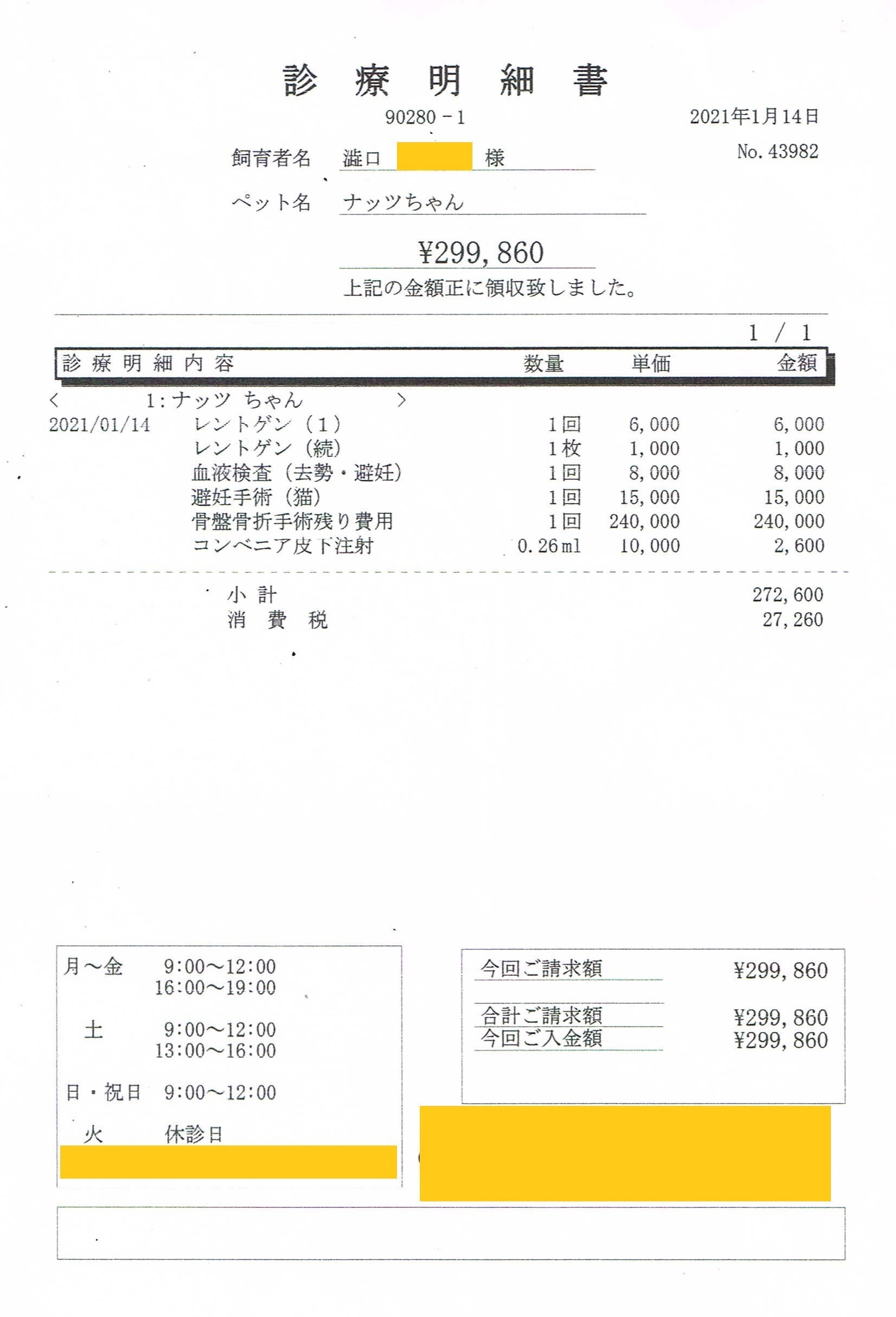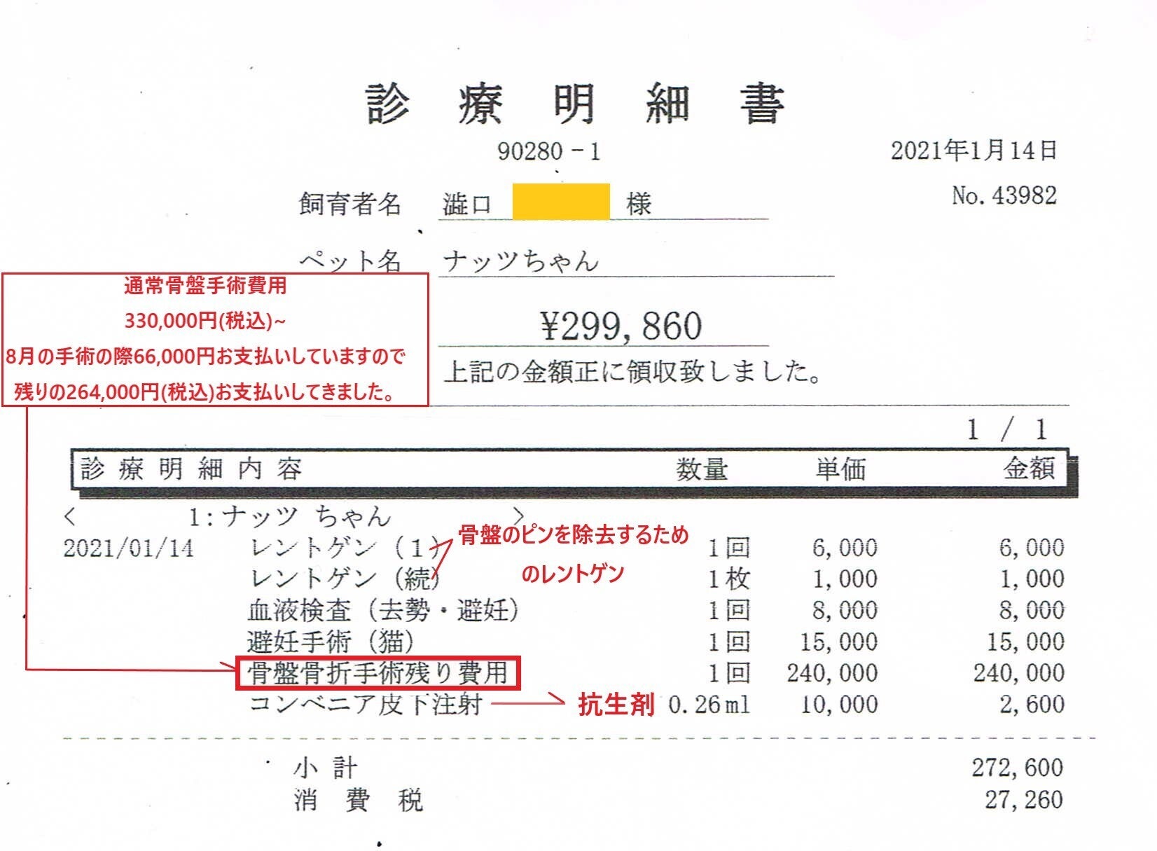 避妊手術等の費用も含まれた明細なので分かりにくくて申し訳ありません。