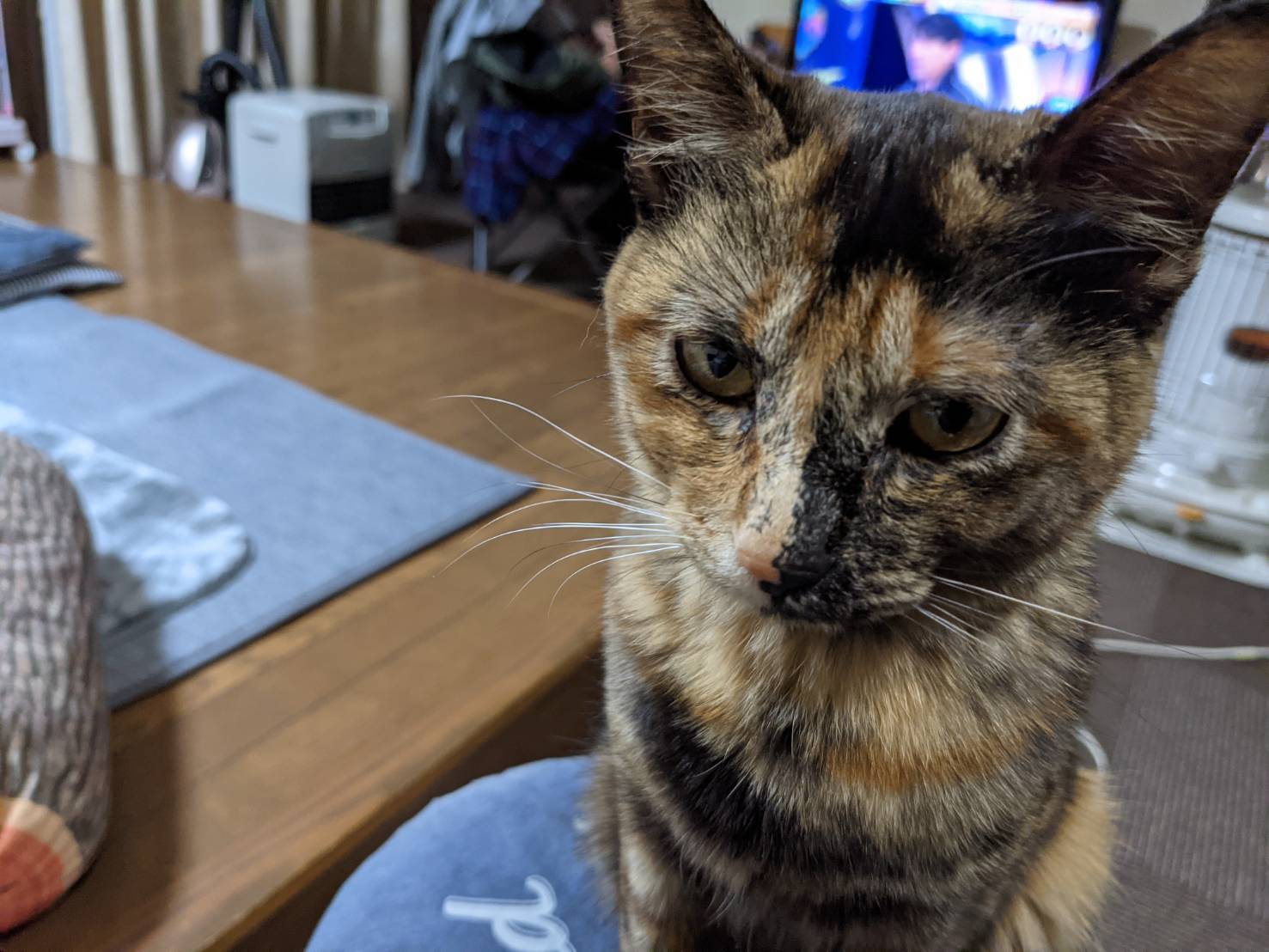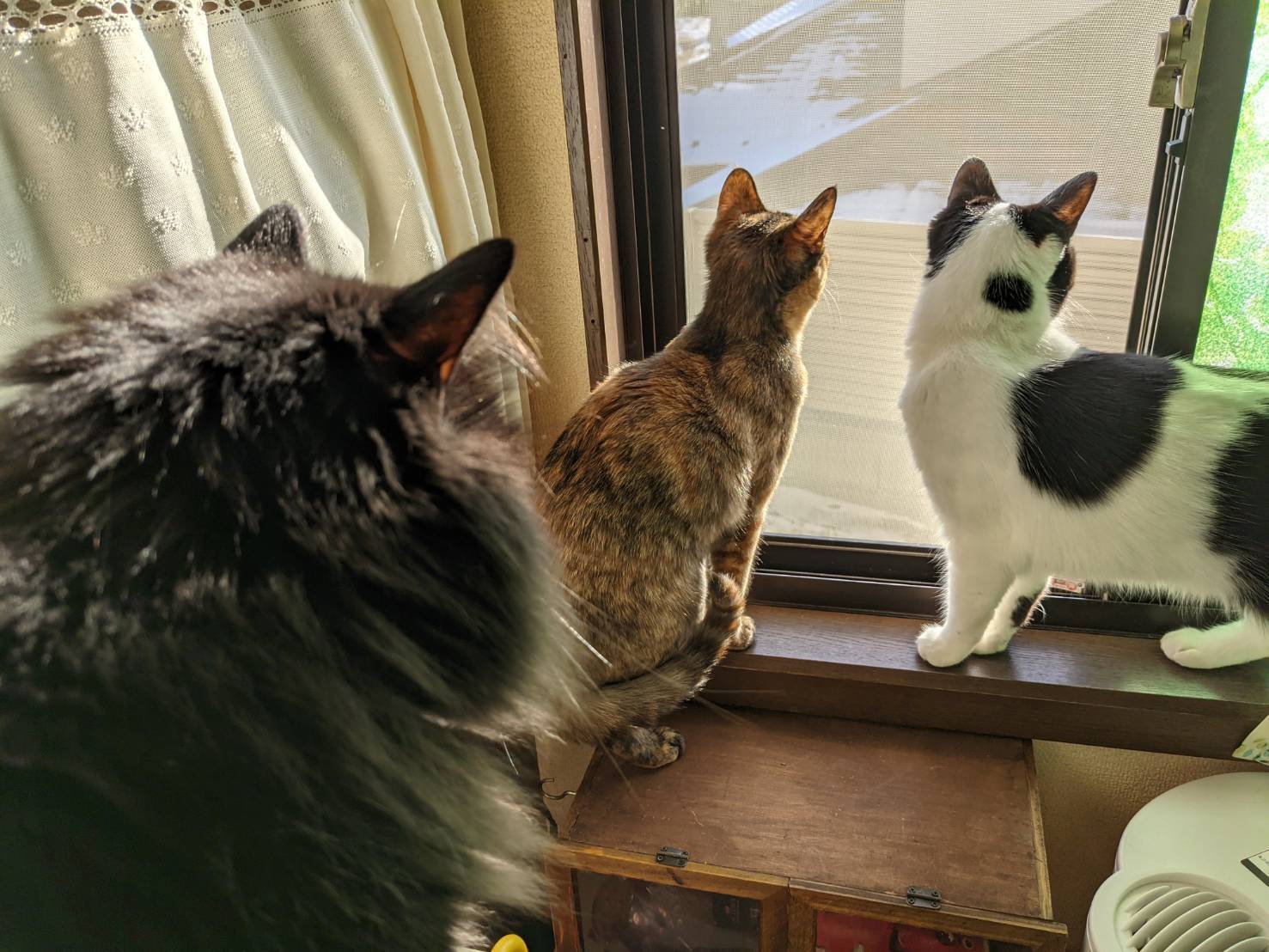 ・朝の様子…前日から絶食の為、先住猫の残したご飯を食べたくて仕方ありません。
