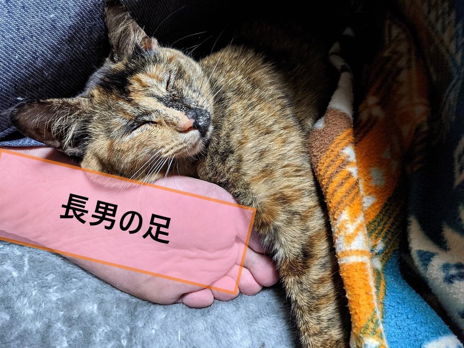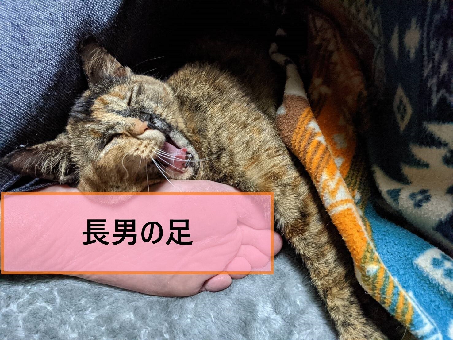 ⇧⇧別の日は珍しく長男の足を枕に寝ています。