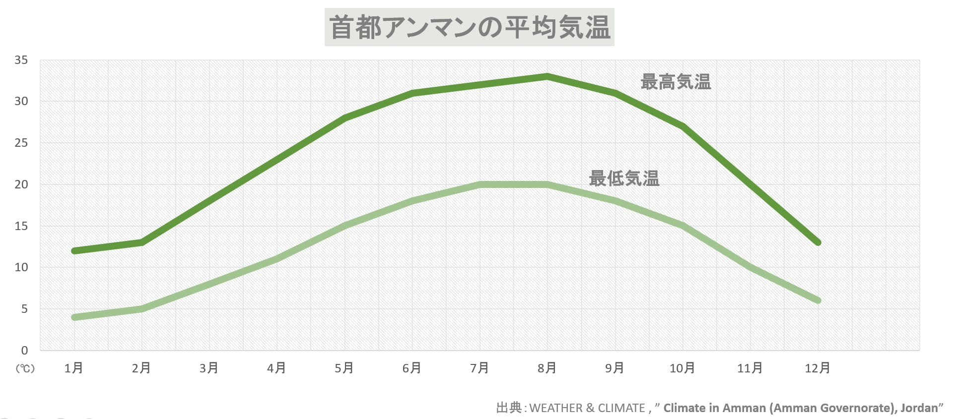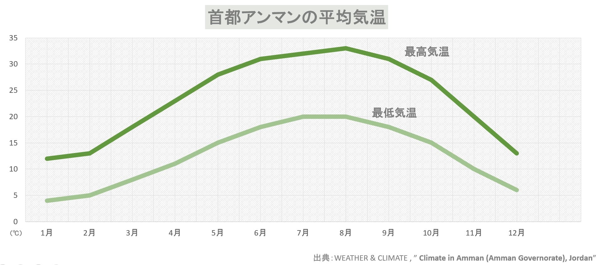 ヨルダンの首都アンマンの冬は、上のグラフを見ていただけたら分かるように、東京の気温とほとんど変わりません。