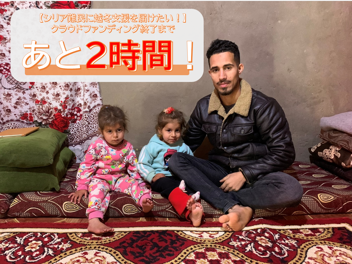 2021/01/15 22:07掲載終了まで残すところ【1時間】となりました!!これまで37人の方にご支援頂き、ついに324,500円が集まりました!(達成率108%)皆様の温かい応援をいただいて目標金額を達成できました!!ご支援やシェアをして頂き、本当にありがとうございます。この活動を通して少しでも多くの方が、シリア難民の方々について知るきっかけとなれば幸いです!!現地の方々へより多くの支援を届けられるよう、最後のさいごまで一同頑張って参ります!!どうか、残り1時間の間、SNSでこちらの記事のシェア・拡散をお願い致します!!シリア難民支援にご参加ください! もっと見る