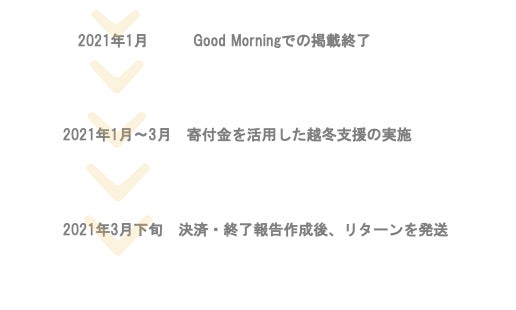 ※領収証はGoodMorning又はCAMPFIREではなく当団体が発行・郵送いたします。