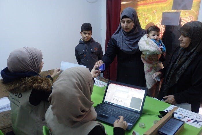 2018年の食料バウチャー配布活動では、母子家庭や世帯主が女性である約1,500世帯を対象に、各家庭に70ヨルダンディナール(約11,200円)分のバウチャーを配布しました。このバウチャーは地元のスーパーマーケットで、食料品や日用品を自由に購入するために使用されます。