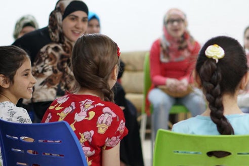 (シリア難民及び少数のヨルダン人と対象とした心理社会的ケアプログラムの様子)
