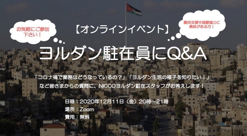 先日開催された、オンラインイベント「ヨルダン駐在員にQ&A」にご参加くださった皆さま、本当にありがとうございました。