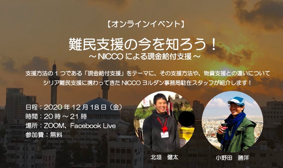 はじめまして。NICCO元インターンの吉田明子と申します。本日は、現在NICCOが絶賛挑戦中のクラウドファンディング「ヨルダンに避難中のシリア難民に、冬を過ごすための支援を届けたい!」の応援メッセージをお届け致します。私は現在、政府委託の某難民支援財団で難民申請者の支援業務を行っております。現在の仕事をする上で、基礎になっているのはNICCOインターン時に経験したヨルダンでのシリア難民支援事業です。 私が派遣された2016年4月時点では、シリア難民及び貧困層のヨルダン人を対象に心理社会的ケア、インフォーマル教育、物資配布、カウンセリング事業及び女性の収入創出支援などが実施されていました。 (心理社会的ケアワークショップのアイスブレイクの様子)●支援を継続することについて「難民支援を継続すること」これは長期化難民状況が危惧される現代において、支援団体が直面する深刻な課題であり、ヨルダンのシリア難民支援においても同様です。2011年3月、シリア戦争が勃発し、ヨルダンでは現在、約66万人程のシリア人が長期化避難生活を強いられています。NICCOは、過酷な状態下で暮らすシリア人のため、引き続き越冬支援活動(現金給付や物資配布)を実施しております。(シリア難民及び少数のヨルダン人と対象とした心理社会的ケアプログラムの様子)(越冬支援活動にて配布の様子)●ヨルダンの冬は意外にも寒い!皆さんは、ヨルダンといえば一年中温暖な気候をご想像されたのではないでしょうか?実は、こちらが真冬のヨルダンの写真です。(真冬のヨルダンの様子。写真左はNICCO元専門家。)意外にもヨルダンは積雪が多いのです。そのため、十分な暖房機材がないシリア人のご家庭では寒さを耐えしのぐ日々となり、昨今のコロナ禍では、例年にも増して厳しい生活が予想されます。(2016年4月、NICCOカウンセリングチームと家庭訪問したシリア人ご自宅※あくまで一例)長期間にわたり難民生活を強いられているシリア人にとって、冬の到来は何度経験されても困難を要するものだと想像します。シリア人道危機におけるNGOの活動予算は年々削減される一方、シリア人の難民生活は変わらず前途多難です。私はシリア人友人達の健康と安寧な日々を願ってやみません。皆様からの温かいご支援をお待ちしております。(シリアの子ども達が寒い冬でも笑顔を絶やさず生活できることを祈っています。)