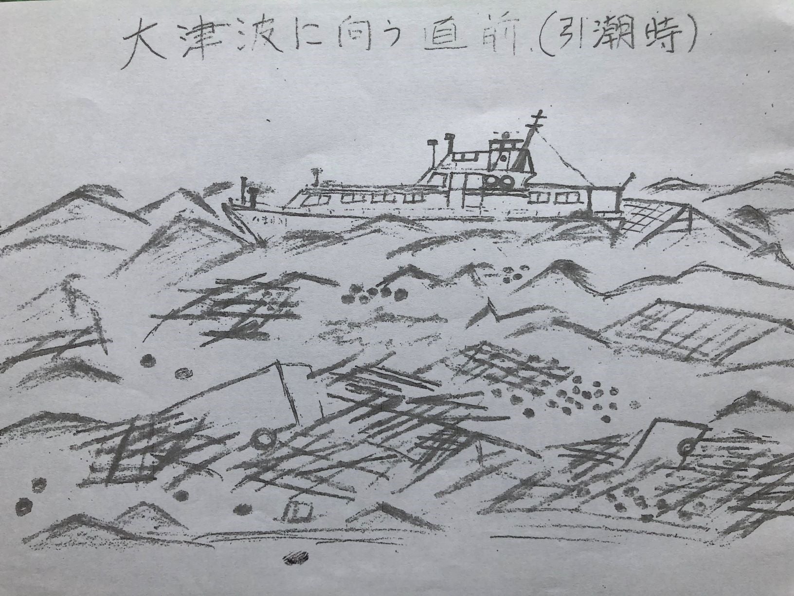 2011年3月11日ゴーーーーという大きな地鳴りとともに、経験したことのない大きな揺れが襲ってきました。「大きい津波がくるぞ!お前は孫と高台に逃げろ!おれは船を出す」そう言って父は着の身着のまま走り出していきました。「船がなくなったら島のみんなが困ってしまう」すでに港には第一波が襲来し、黒い波が押し寄せているなかでも、父に迷いはなかったそうです。