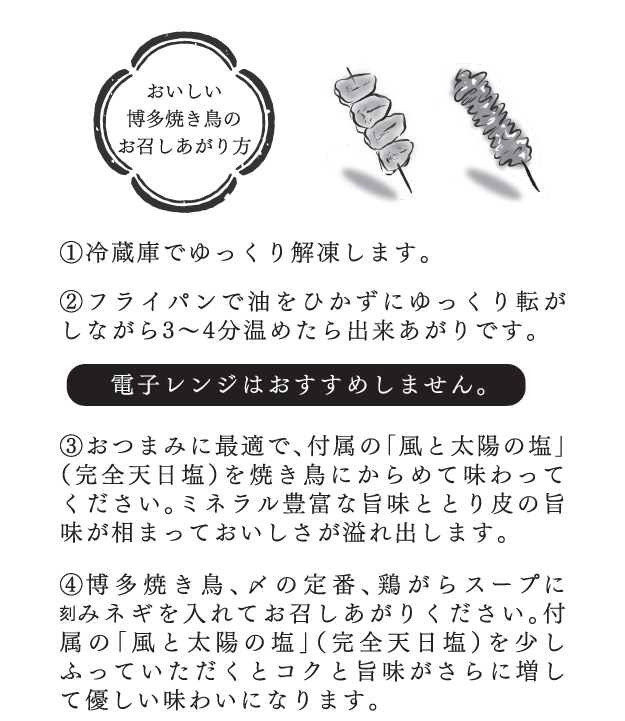 九州産華味鳥を贅沢に使用し、熊本県天草産の完全天日塩と