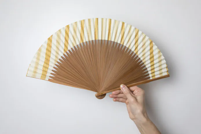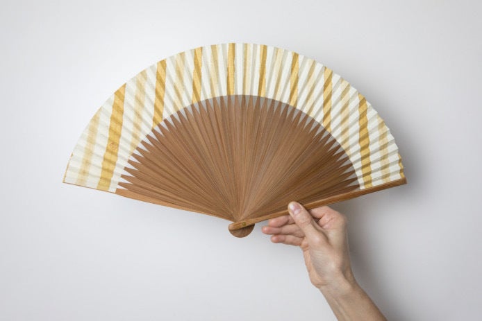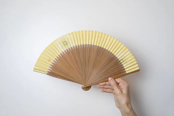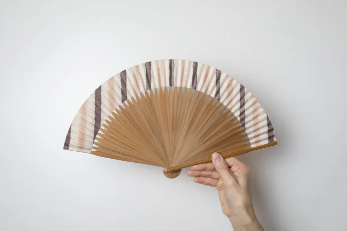 明治32年創業の杉山江見堂さんが作成する草木染の扇子です。天然の染料から生まれる自然の豊かな色合いが心惹かれます。和紙は本美濃紙の極薄の(薄美濃紙)を使用し、一枚一枚柄に合わせて染色します。骨は滋賀県高島市のオリジナルで仕立てています。