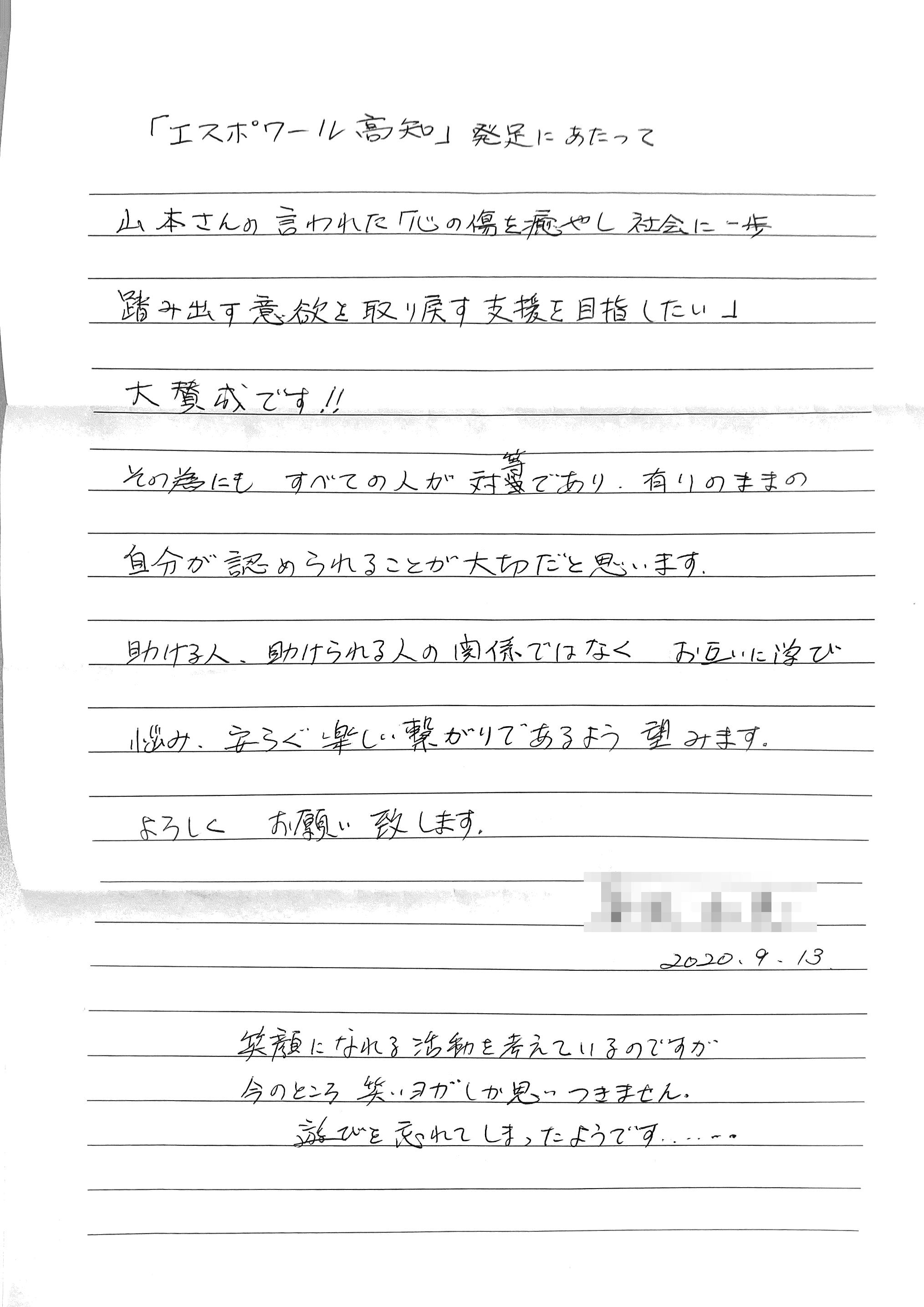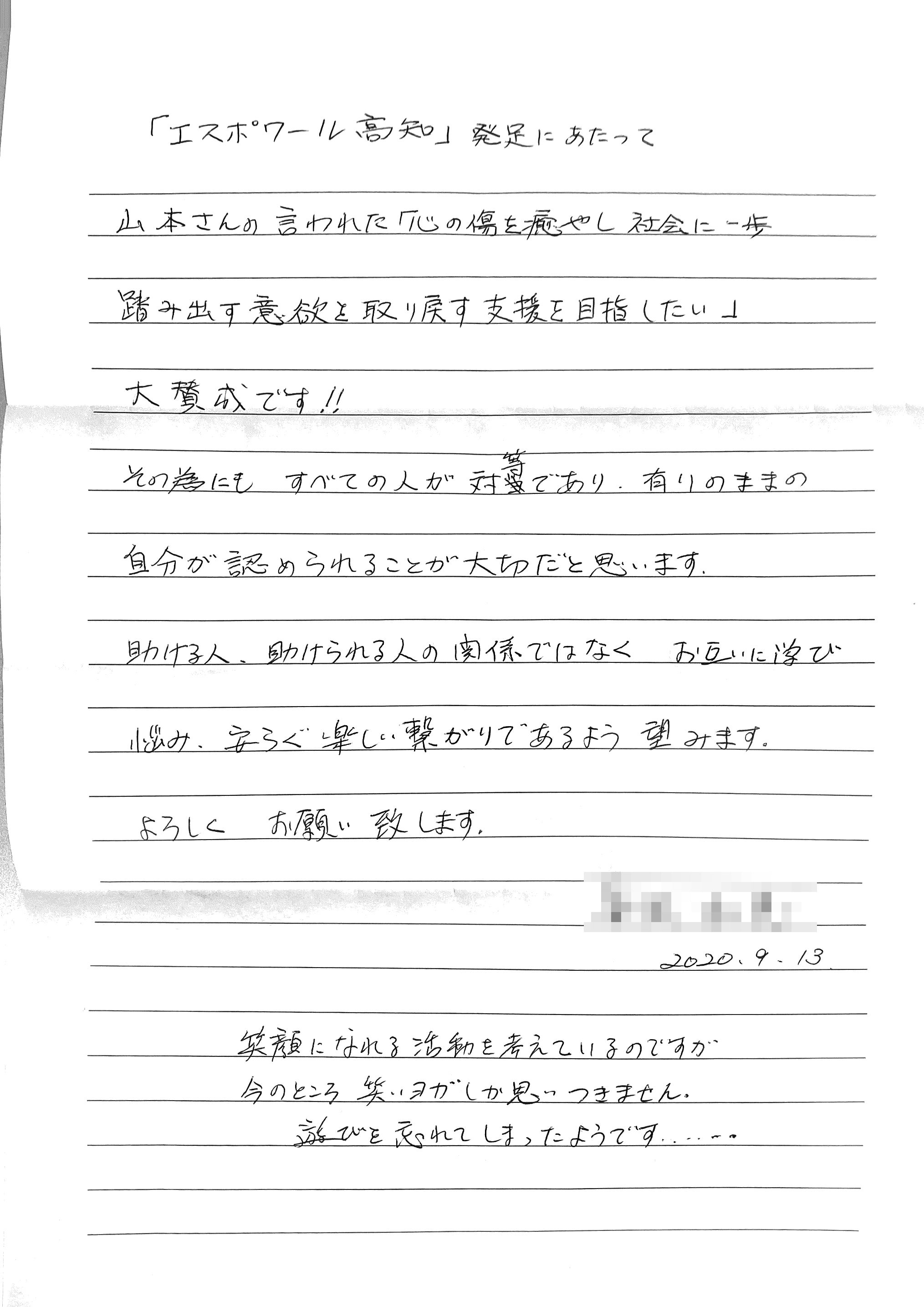 山本さんが言われた「心の傷を癒やし社会に一歩踏み出す意欲を取り戻す支援を目指したい」大賛成です!!