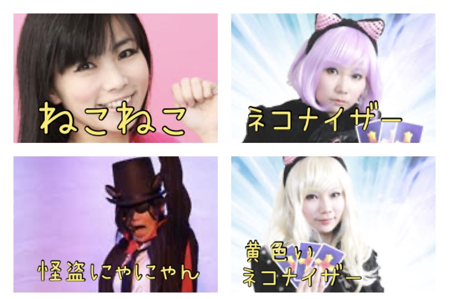 ↑の4つのキャラは、作ったお話のキャラを演じてるだけなので自分で何をやっているのか意味はわかる。ライブににゃにゃんが出るのはイメージ的には某ネズミの国の「キャラグリ」的な感じなんだけど、ばけねこは今のままでは意味が分からないのにゃ(>_<)