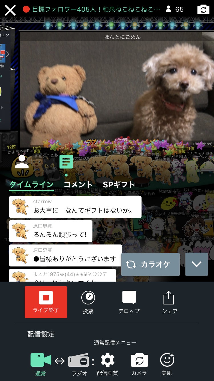みんなでるんるんの手術成功祈願。麻酔で1000匹に1匹が命を落とします。動物医療は進歩したと言っても、リスクは人間の10倍から100倍。SHOWROOMという配信サイトで、るんるんアバターに着替えて応援いただきました。