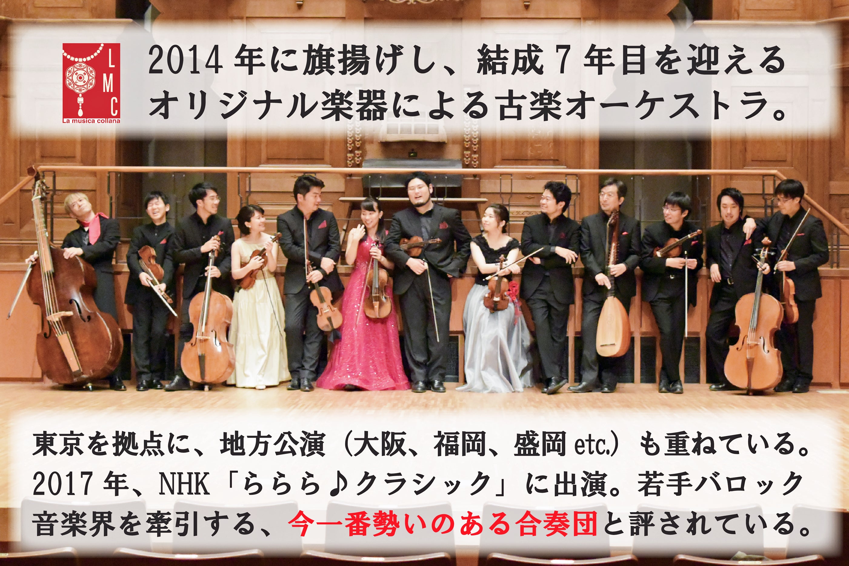 長年応援してくださっているファンの皆さま、私たちの活動を知って興味を持ってくださった皆さま、私たち《 La Musica Collana 》の活動のご支援を、どうぞよろしくお願いいたします。