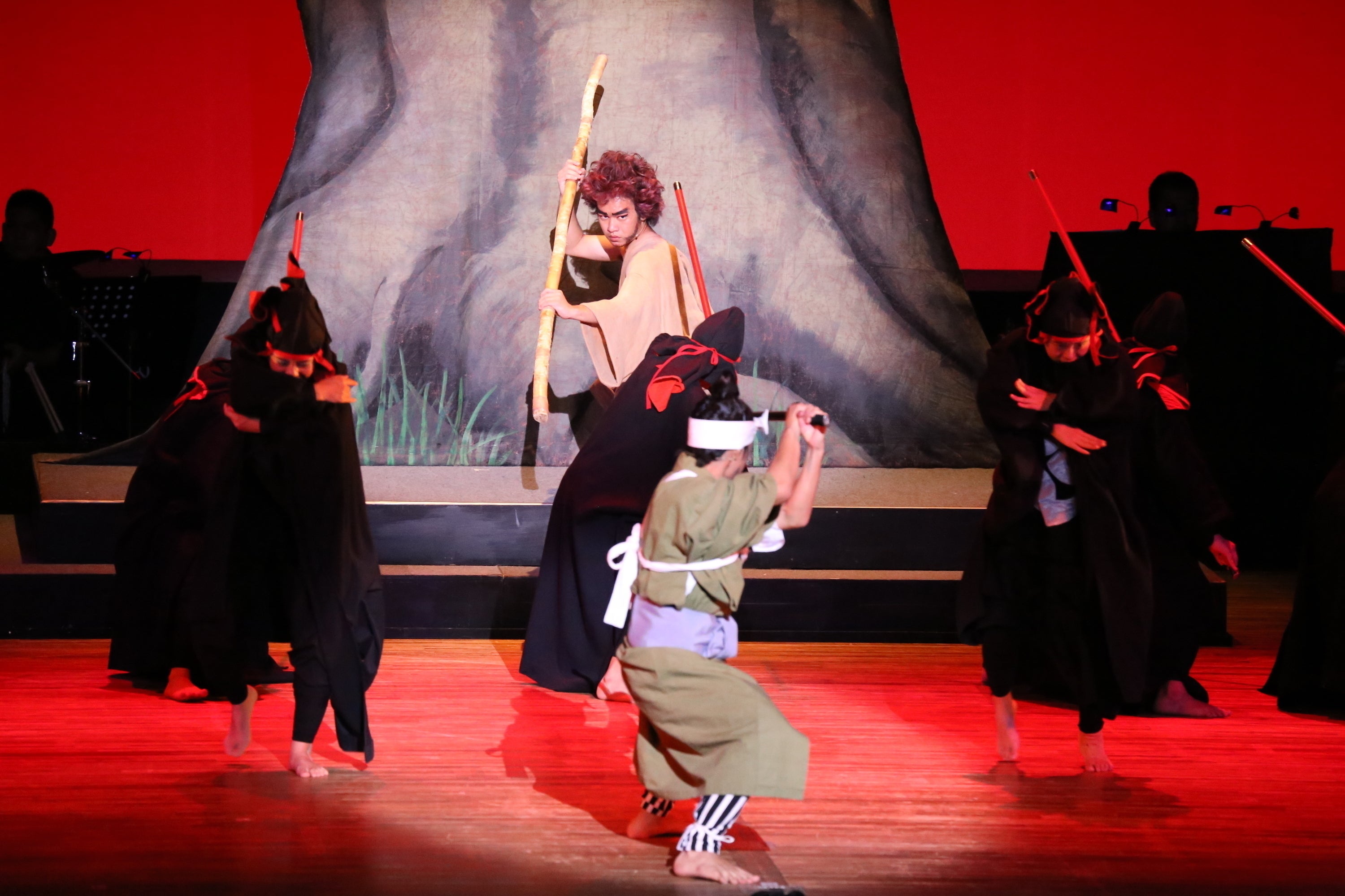 ウイングキッズリーダーズが演じる舞台「オヤケアカハチ〜太陽の乱〜」は、500年以上も昔にこの八重山に実在した人物オヤケアカハチを題材にした物語。琉球王府による厳しい年貢の取り立てに苦しめられていた八重山の民のために、彼が起こした反乱は「オヤケアカハチの乱」として八重山の歴史を語る上でも重要な出来事として語り継がれ、オヤケアカハチはこの戦で王府軍に討たれたものの、八重山の民のために立ち上がった英雄として今でも人々に讃えられています。
