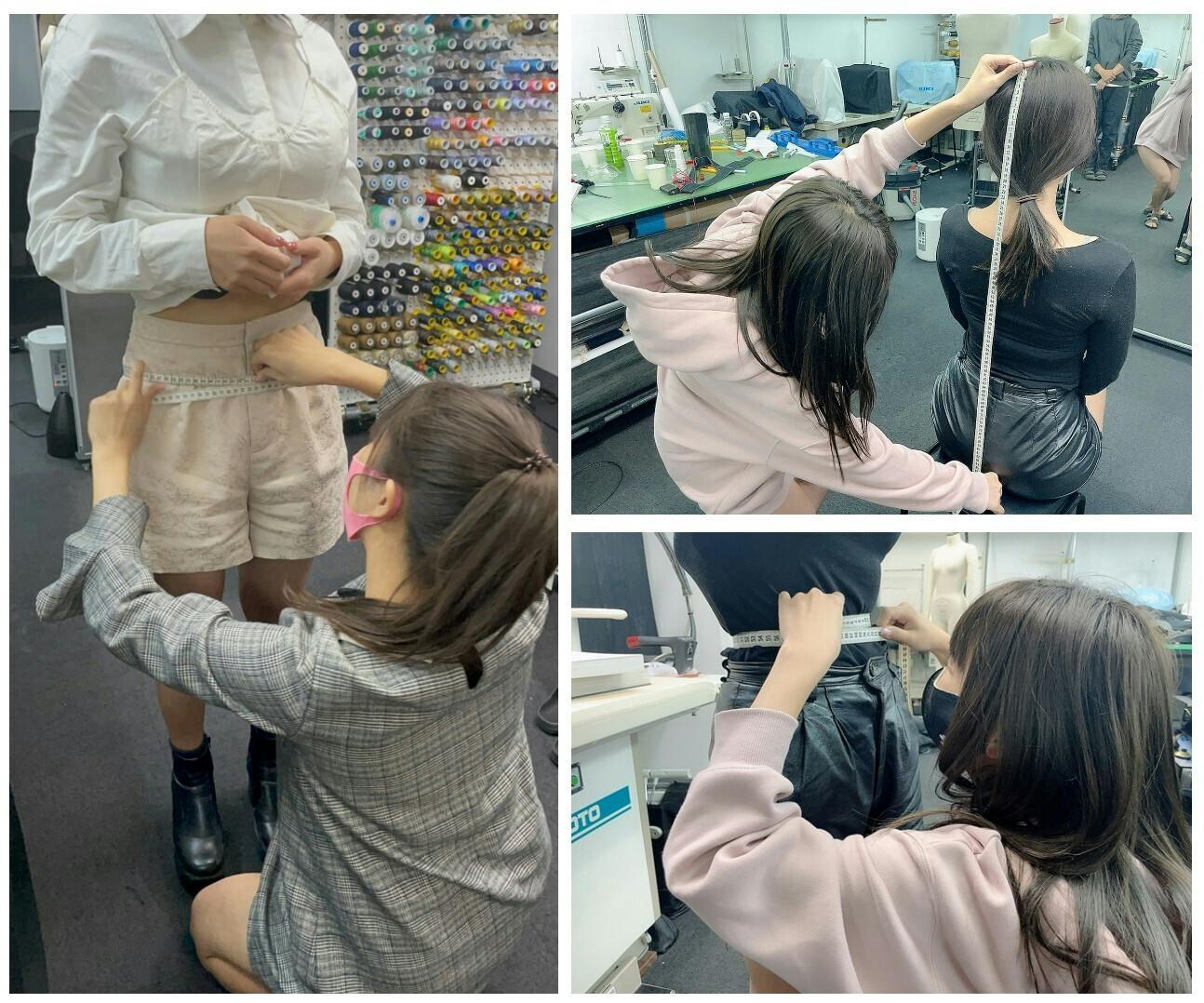 何回も何回もくびれ体型さん2人とデザイナーさんとパターンナーさんと私(美脚体型さん)とで