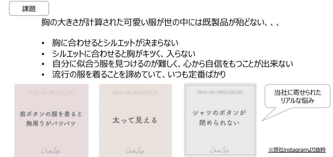 2020年の3月に起業したので26歳で実際に大きい胸の女性のための服を作ろうと行動に起こしたのですがもう5年も経っていてその間ずっと悩み続けていたのです。