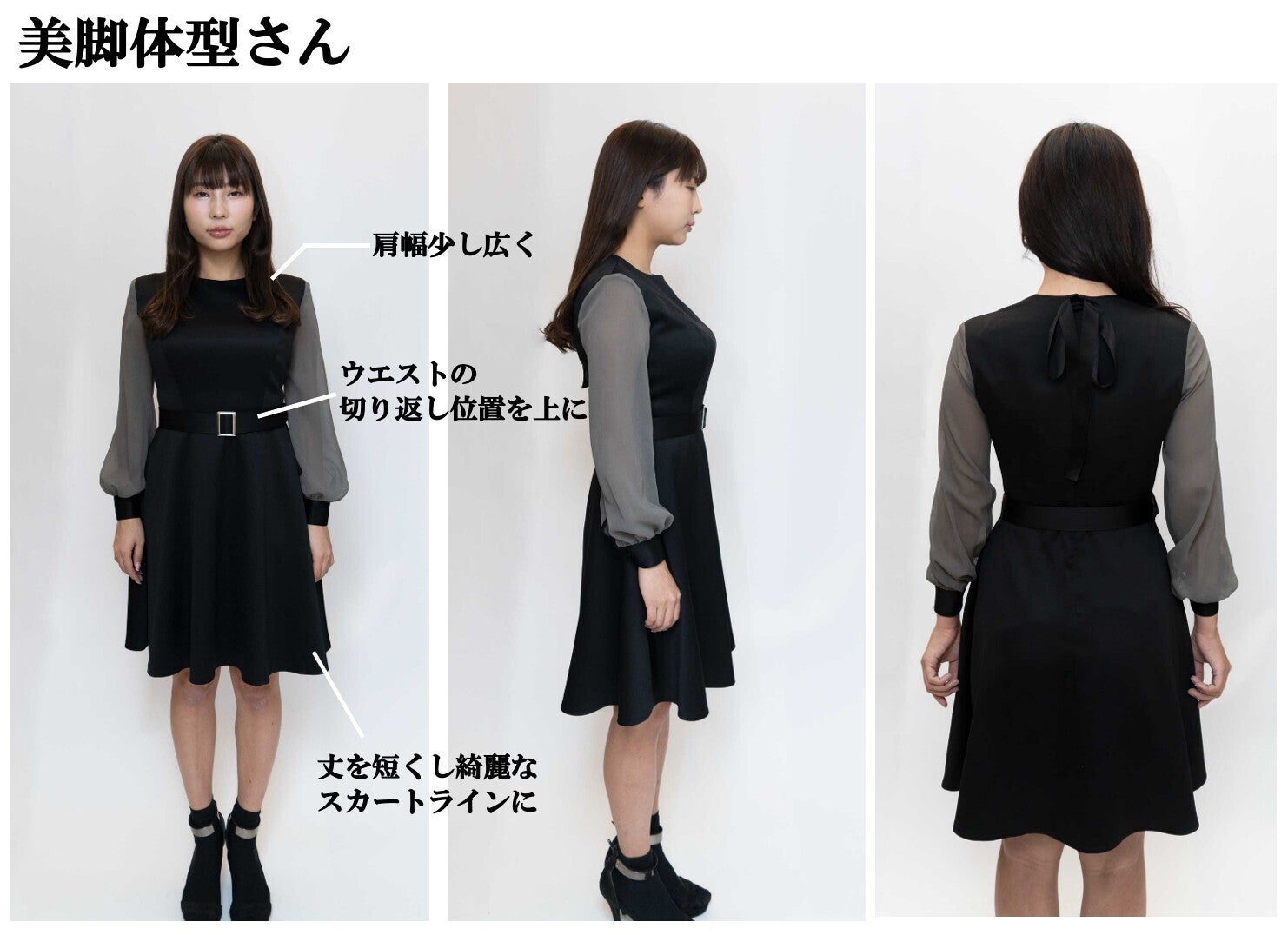 そして今回、ベースは同じデザインでありながら、くびれ体型さんと美脚体型さんに合わせて、それぞれの体型さんの良い所をより良く魅せつつコンプレックス部分を視線誘導やパターンの出し方など、いろいろな角度から課題を解決し、大きい胸の女性が自分の身体に合って綺麗に見える服でスタイルアップを叶えるために胸をふっくら見せてウエストをキュッと綺麗に魅せて、鏡を見た時にきゅんっと気分が上がるような自分ウケする、そんなワンピースを作ることができました!!