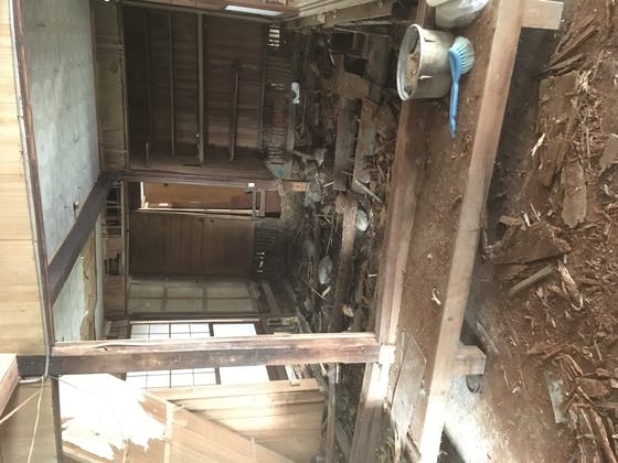 二階は必要のない奥の方は取り払い、屋根の雨漏りを直し、床の抜けたところを修繕すればだいたい使えるようになりそうです。