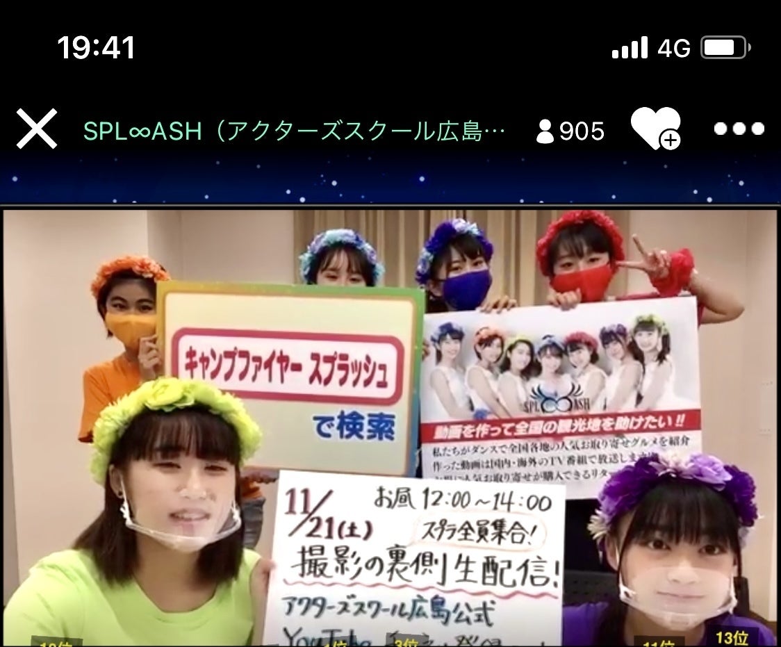 2020/11/16 21:59活動報告です!スプラッシュメンバーでSHOWROOMを使ってクラファン告知をしました!今できることは少しでもプロジェクトを知ってもらう事!約900人が見に来てくれました!皆さんありがとうございます!11/21(土)お昼12時からは番組撮影の裏側をライブ配信しながらもっともっと今回のクラファンプロジェクトをたくさんの方に知ってもらい応援を呼び掛けたいと思います!もちろん楽しめるライブ配信になるようみんなで頑張ります!視聴はアクターズスクール広島の公式ユーチューブチャンネルで皆さん登録お願いいたします!!https://www.youtube.com/user/ActorsHiroshima/videos もっと見る