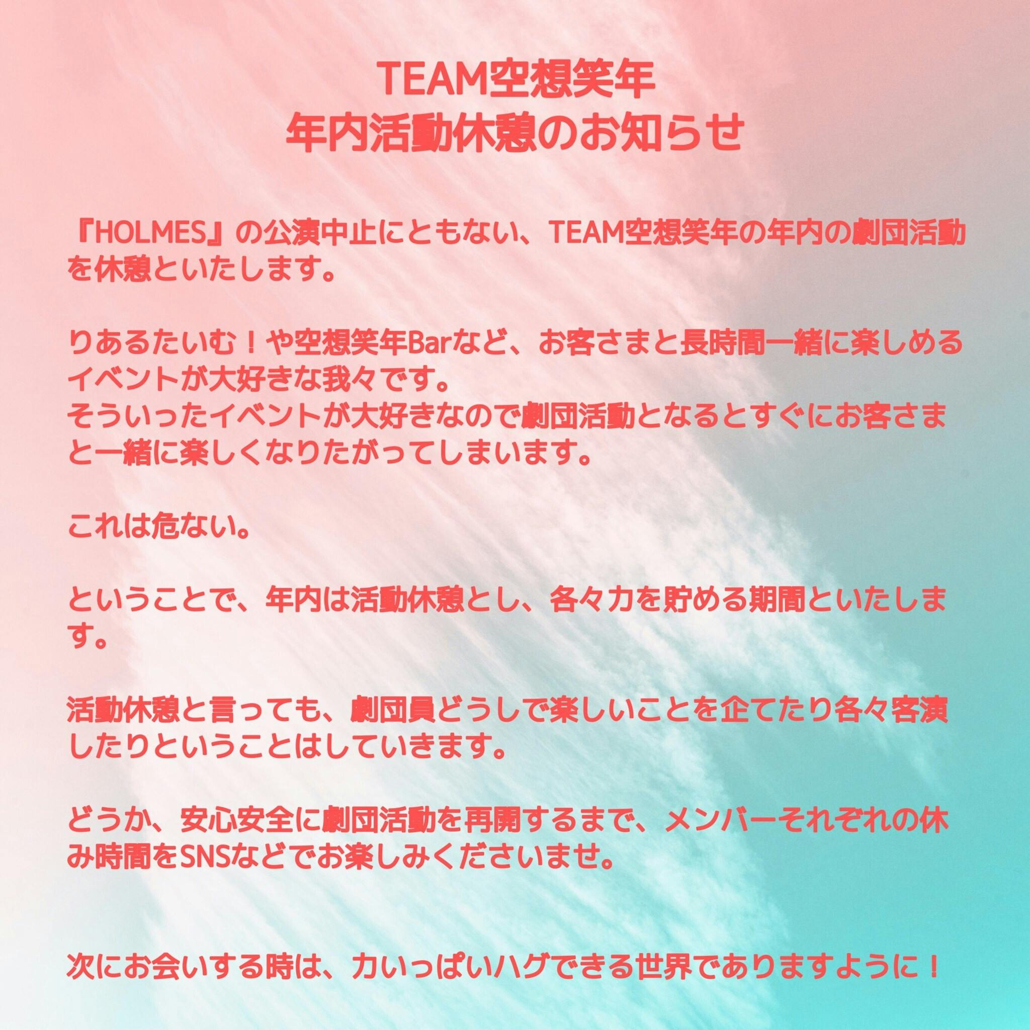 2020年、新型コロナウィルスの感染拡大によりTEAM空想笑年の本公演が中止となり、