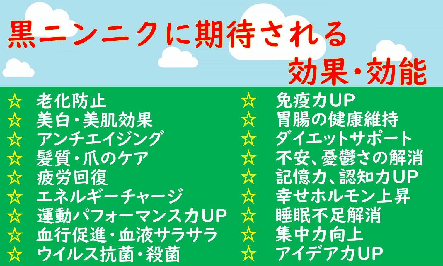 こちらが黒ニンニクに期待される効果です!!
