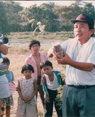 環境問題が取上げられることなど皆無の30年前から「遠回りに見えても、植林こそが国際支援のカギ」「これからは子供が植林の主役」と熱く語る池田さんの先見の明でした。この池田さんから学んだ経験やノウハウのお蔭で、その後「ラブ・グリーンの翼」はフィリピンからマレーシア、フィジー、インドネシア、タイへと点から面へその翼を広げました。