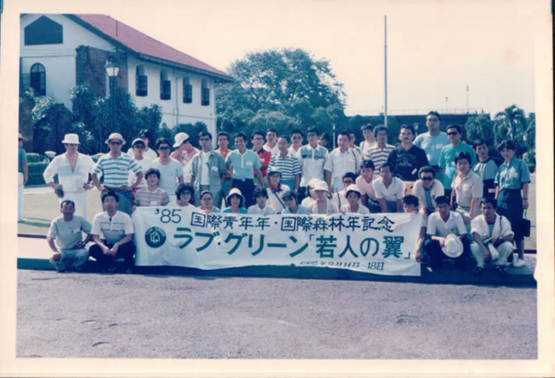 ラブ・グリーンの会は、1985年「国際青年年」「国際森林年」を記念してオイスカと福岡県が、共催してフィリピン共和国で実施した熱帯林再生プロジェクト「若人の翼」の参加者160名によって、帰国途中の飛行機のなかで結成されました。以来35年にわたり、「継続こそ力なり」を合言葉に47回延べ1,464名の参加者によりフィリピン、マレーシア、フィジー、タイ、インドネシア5カ国において59万本の植林活動を展開し、山には「福岡の森」建設、海には「マングローブの森」再生プロジェクトを実施しています。