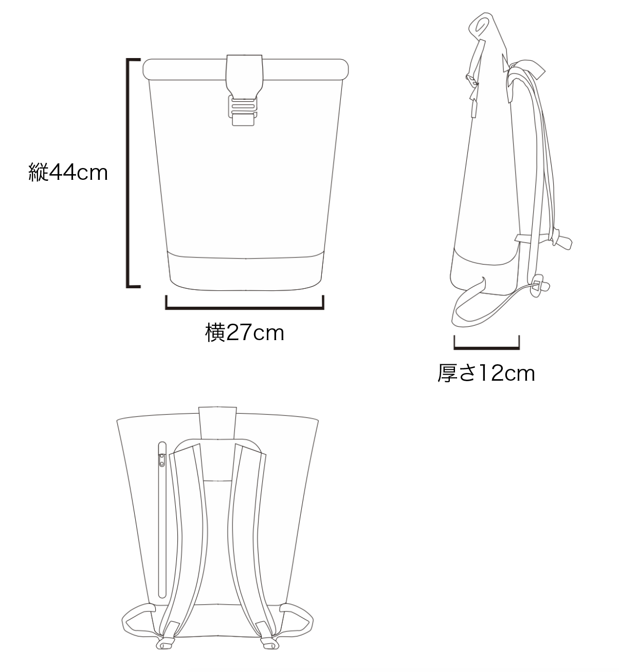 サイズ:縦44cm × 横27cm × 厚さ12cm