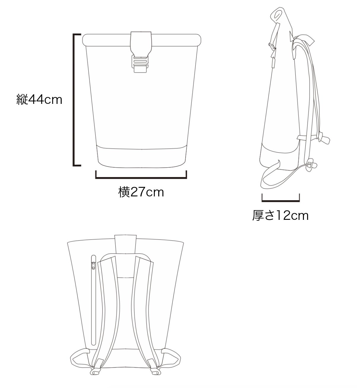 余計なポケットやパーツを少なくし、すっきりとしたデザインを採用しました。おしゃれなロールトップは、気分に合わせてロールか折り畳みかを選択できます。