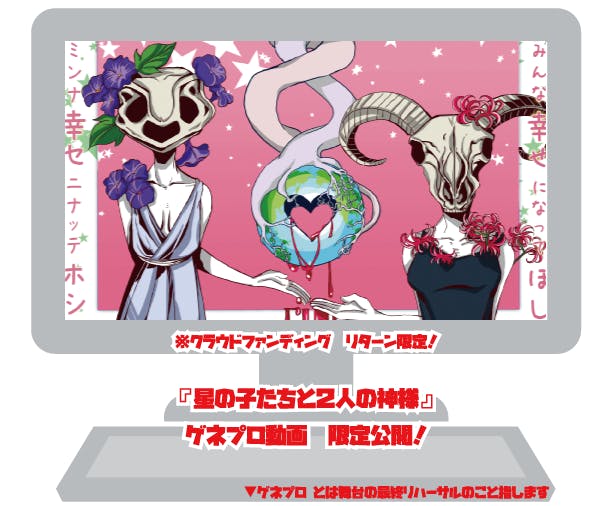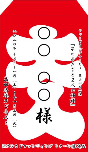 ※公演が中止になった場合は代わりの品をリターンとしてお送りさせて頂きます。(ゲネ写真や公演DVD等)