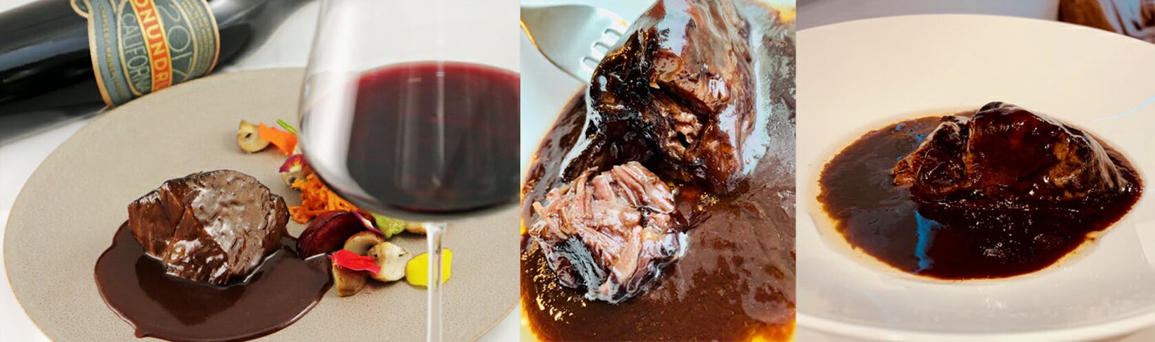 Ex)北海道のレストランでも大変ご好評いただいている[十勝ハーブ牛(ホホ肉)を使用した赤ワイン煮込み]