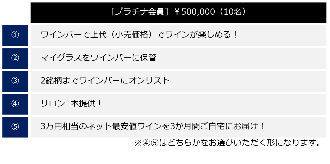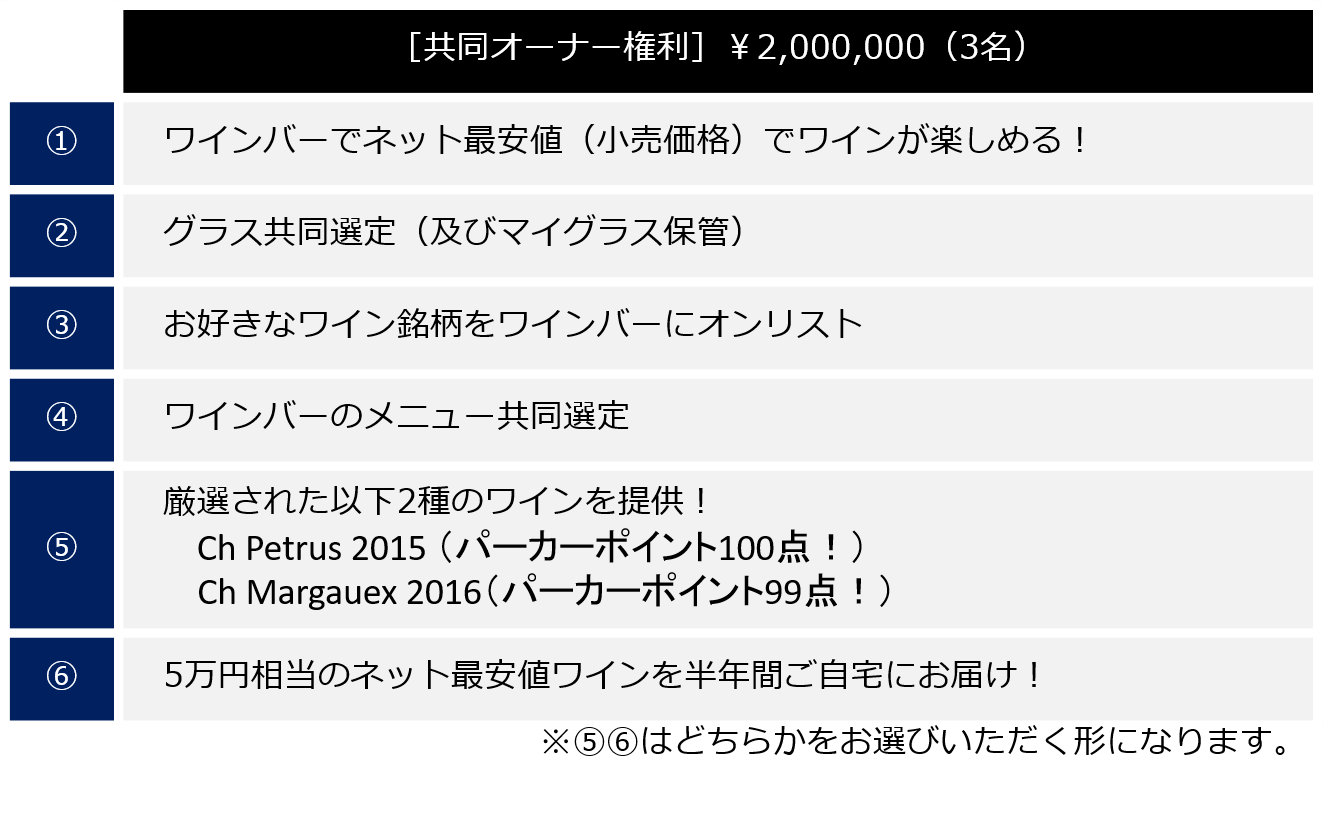 そして、今回ご支援いただいたお客様には[隠れ家ワインバーのオーナー]という形で、今後ワインを中心とした様々なオーナー様限定のサービスを展開したいと考えております。